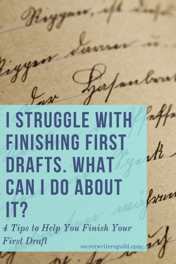 I love to write, but I have a difficult time finishing first drafts. Oftentimes I get caught up in the prose, the planning, the details… One time I spent a year and a half on a project and only got to the 22,000 word mark. That’s fine, by the way, if that’s the way you prefer to work! But I find myself getting lost in the details, and that makes it difficult to follow through and finish it. I overthink and want it to be perfect. I compare it to other people’s finished and edited books. I feel like nothing I write is good enough, and I get stuck on rewriting the same scenes over and over again to refine them.
